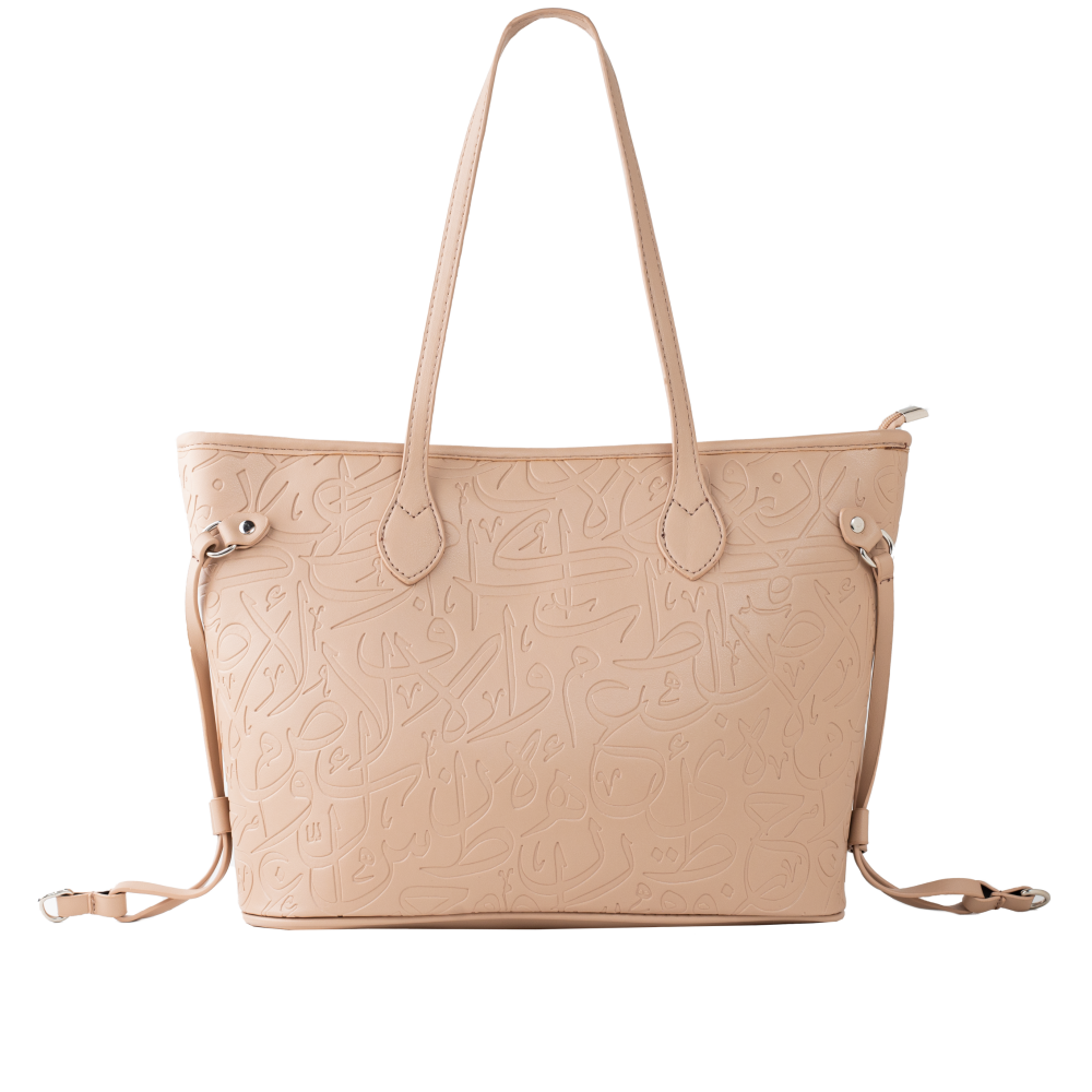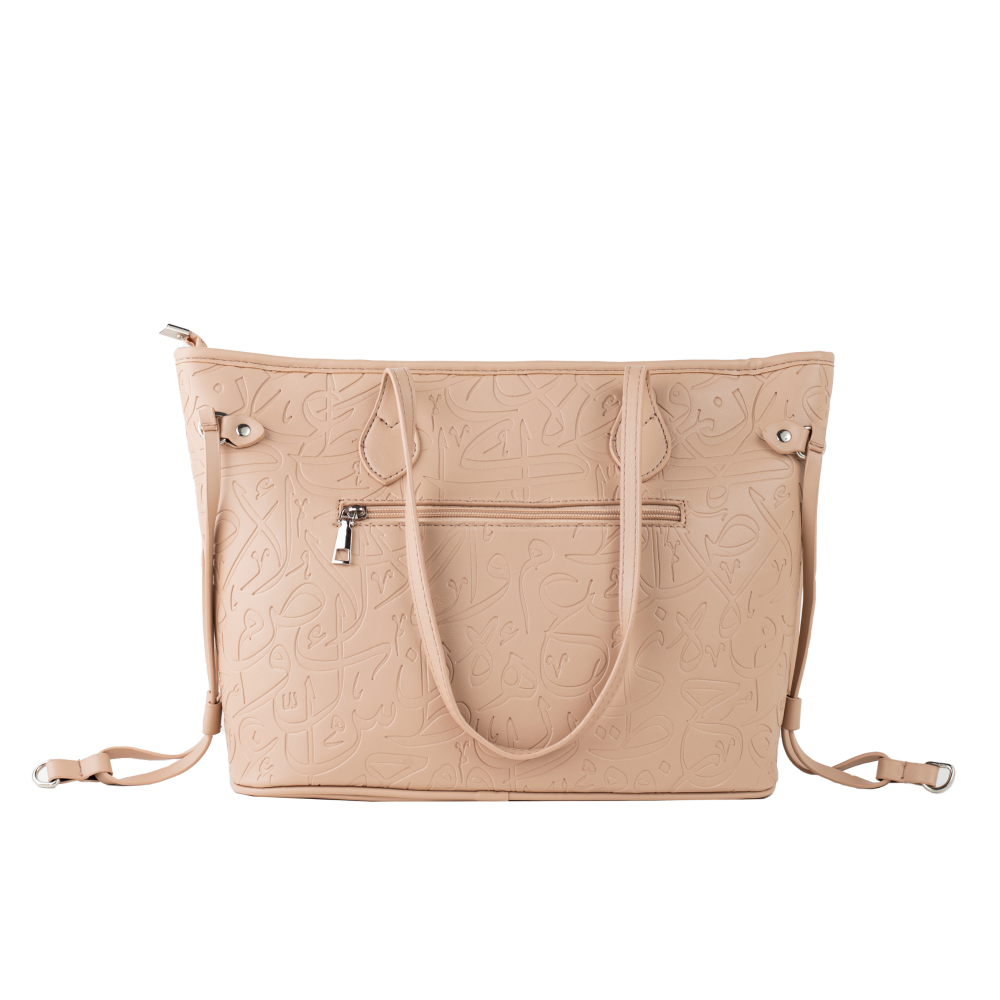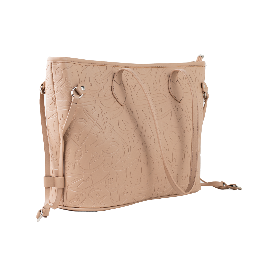 شنطة فاخرة تكمّل إطلالتك اليومية وتمنحك حضور راقٍ بكل مناسبة. تصميمها العملي مع المساحة الواسعة يخليك واثقة إنها بتجمع بين الأناقة والراحة في نفس الوقت. النقوش العربية على الجلد الفاخر تضيف لمسة عصرية من التراث، واللون الرملي الحيادي يضمن إنها تناسب أي ستايل تختارينه.