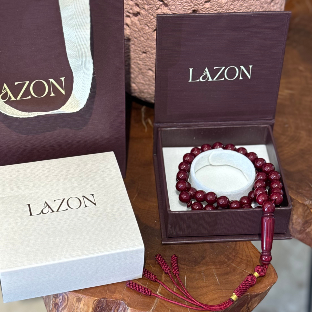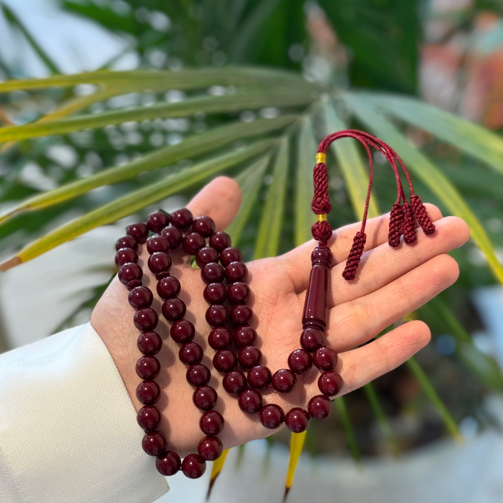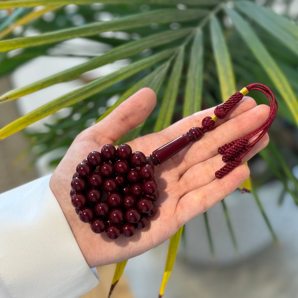 سبحة أنيقة مصنوعة من حجر البكلايت الفاخر بلون عنّابي عميق يرمز للفخامة والوقار. تصميمها البسيط والراقي يجعلها قطعة مثالية ترافقك في مجالسك وأوقاتك الخاصة. تأتي بتغليف فاخر من لازون، ما يجعلها خيارًا مميزًا كهدية راقية.