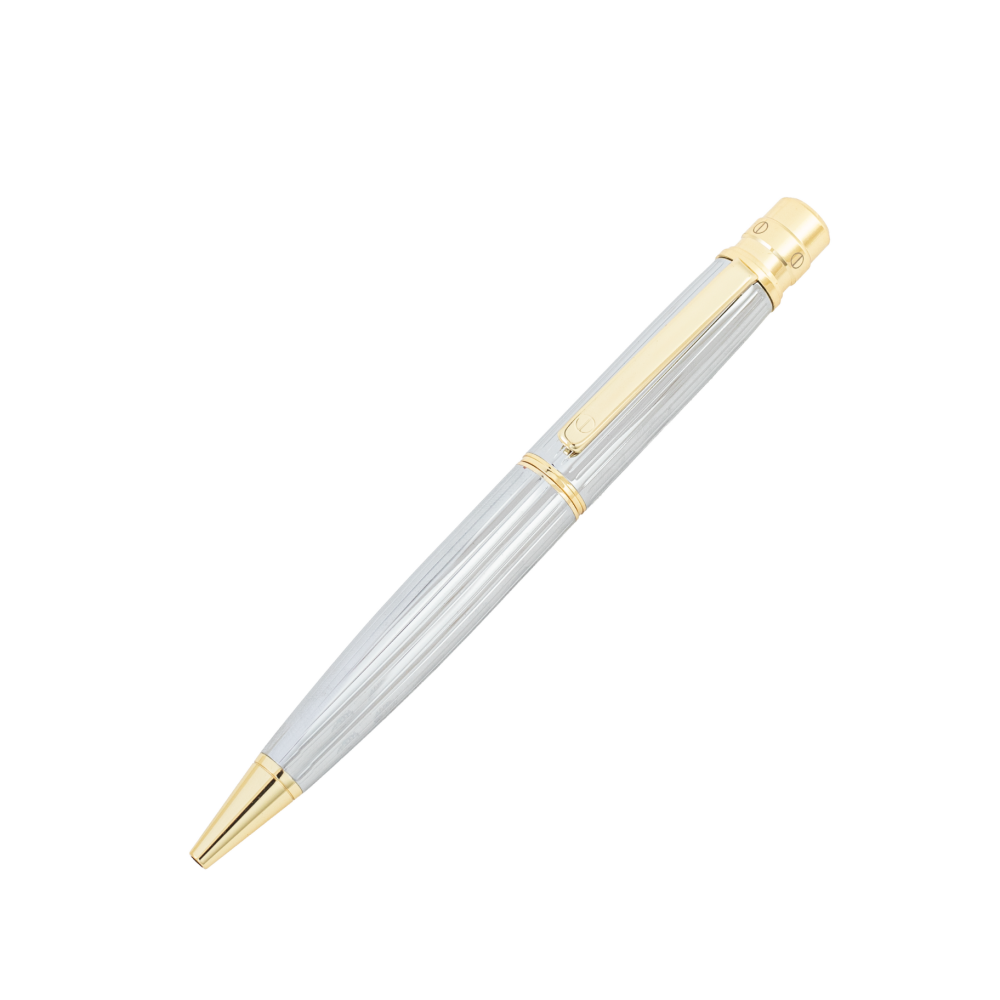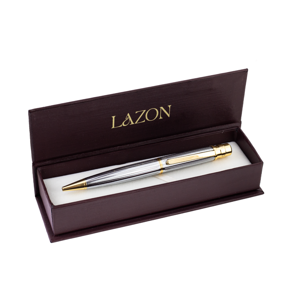 تصميم فاخر يجمع بين لمعان الفضة ورقي اللمسات الذهبية ليمنحك إحساسًا بالقوة والأناقة في كل مرة تستخدمه. هيكل معدني مصقول بدقة يضفي عليه مظهرًا راقيًا يدوم مع الزمن، مع آلية كتابة انسيابية تضمن تجربة سلسة وخالية من الانقطاع.