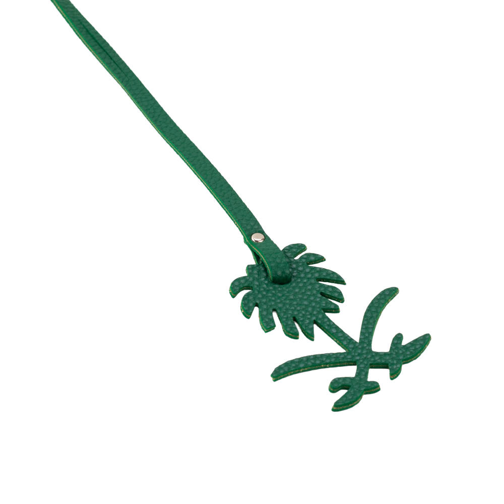 ميدالية أنيقة تحمل تصميم النخلة والسيفين المتقاطعين، الشعار الرسمي للمملكة العربية السعودية. صنعت بدقة من خامة عالية الجودة باللون الأخضر لتجسد معاني العزّة والكرامة والفخر بالوطن.