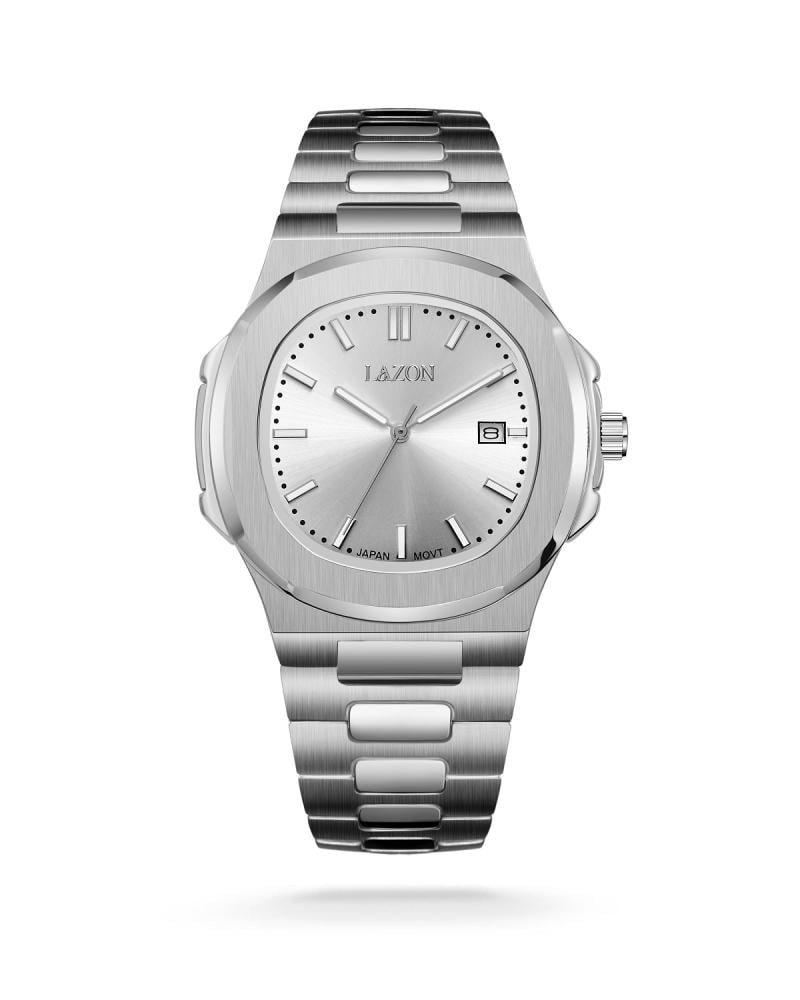 ساعة رجالية من الستيل بميناء فضي - Silver