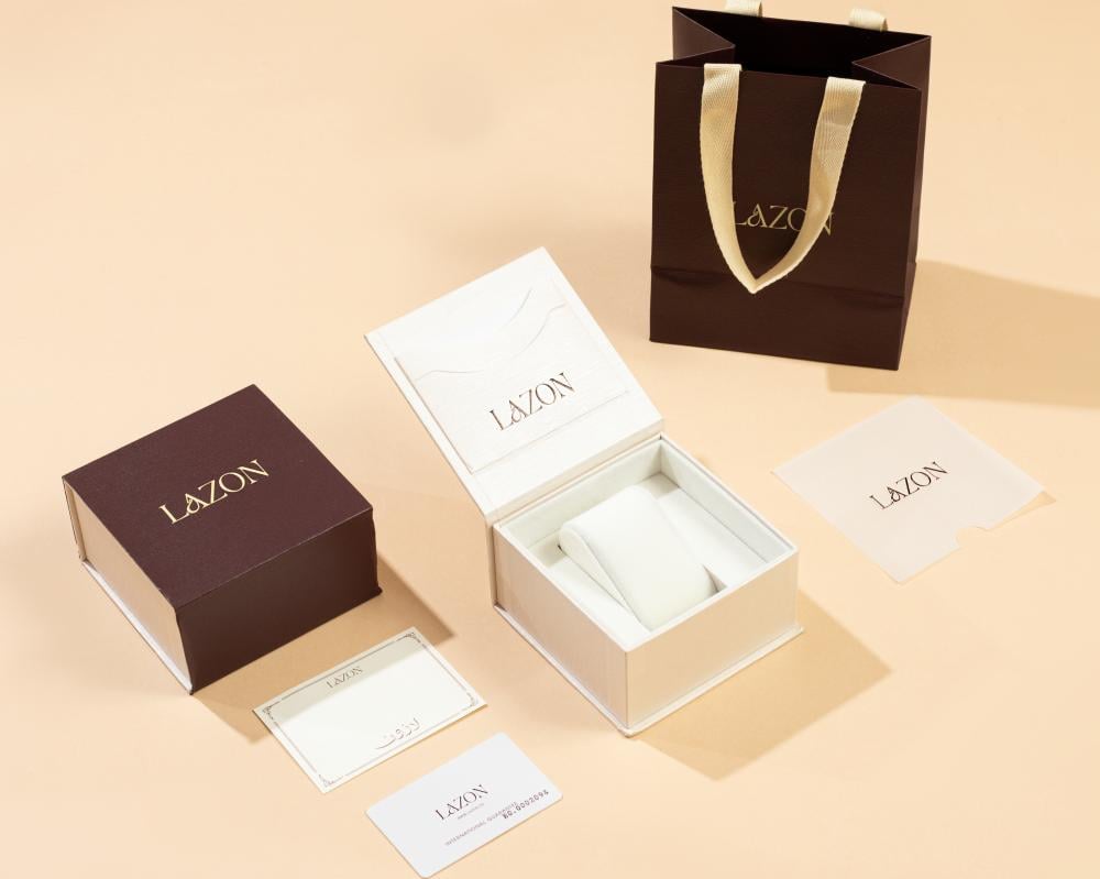 • تغليف فاخر يناسب الإهداء – علبة أنيقة تضم جميع الملحقات، بما في ذلك أداة ضبط السوار وقماشة تنظيف للحفاظ على لمعان الساعة.